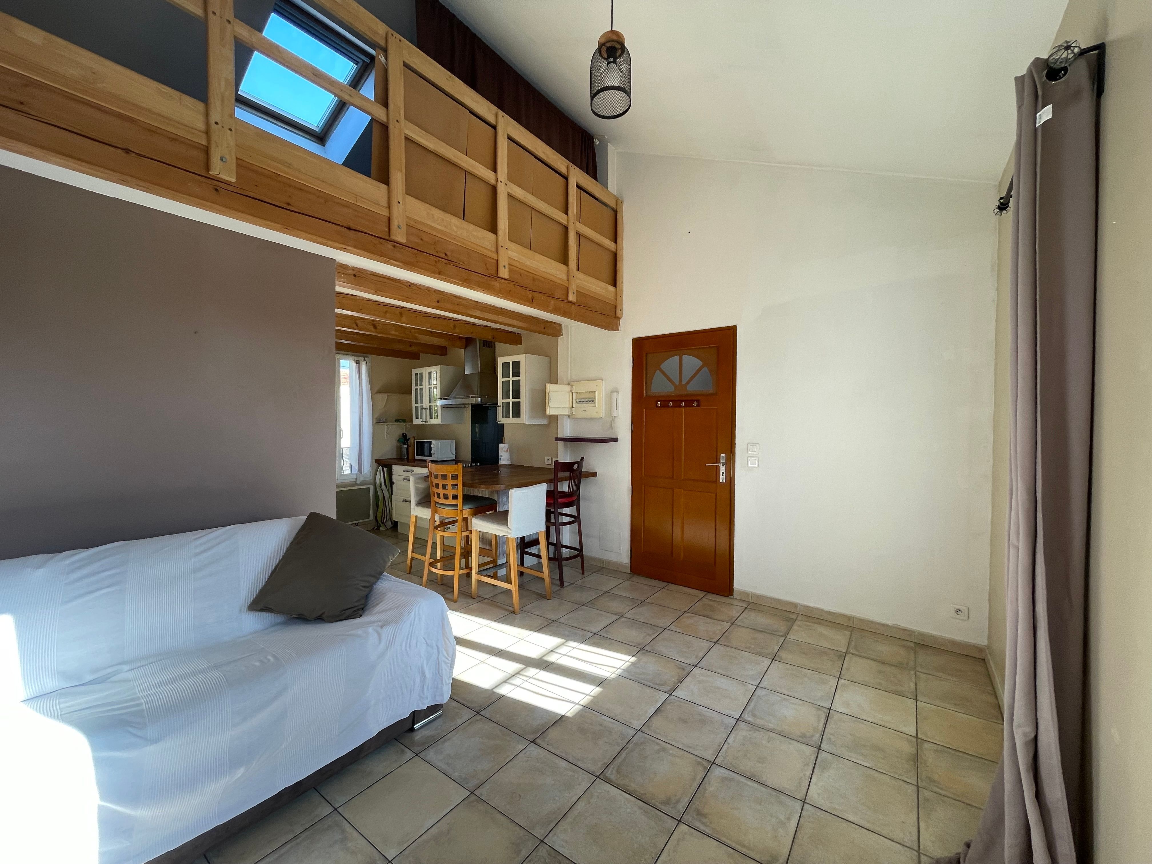 Appartement T2 duplex meublé à louer – Toulon Ouest (83200), secteur Les Routes Situé à Toulon Ouest (83200), dans le quartier recherché des Routes, découvrez ce charmant appartement T2 duplex meublé de 25 m², lumineux et au calme, au sein d’une petite copropriété bien entretenue. Implanté au 1er et dernier étage, cet appartement se compose d’un spacieux séjour lumineux avec cuisine aménagée et entièrement équipée, ouvrant sur une agréable terrasse sans vis-à-vis, idéale pour profiter du calme environnant. Vous disposerez également d’une salle d’eau avec WC, ainsi que d’une mezzanine faisant office de chambre, offrant un espace nuit confortable et bien agencé. Les atouts de ce bien : Appartement meublé et fonctionnel Duplex T2 lumineux Terrasse au calme, sans vis-à-vis Petite copropriété Proximité immédiate des commerces, parkings et bus Accès rapide au centre-ville de Toulon, à l’Arsenal et aux écoles Ce bien est idéal pour un étudiant, un jeune actif ou toute personne recherchant une location meublée à Toulon Ouest, alliant calme, confort et proximité des commodités. ? Location proposée par l’Agence Cabanis, votre agence immobilière de confiance depuis 1964, reconnue pour son expertise et son accompagnement personnalisé dans la location immobilière à Toulon et ses environs. ? Contactez-nous dès maintenant pour plus d’informations ou pour organiser une visite