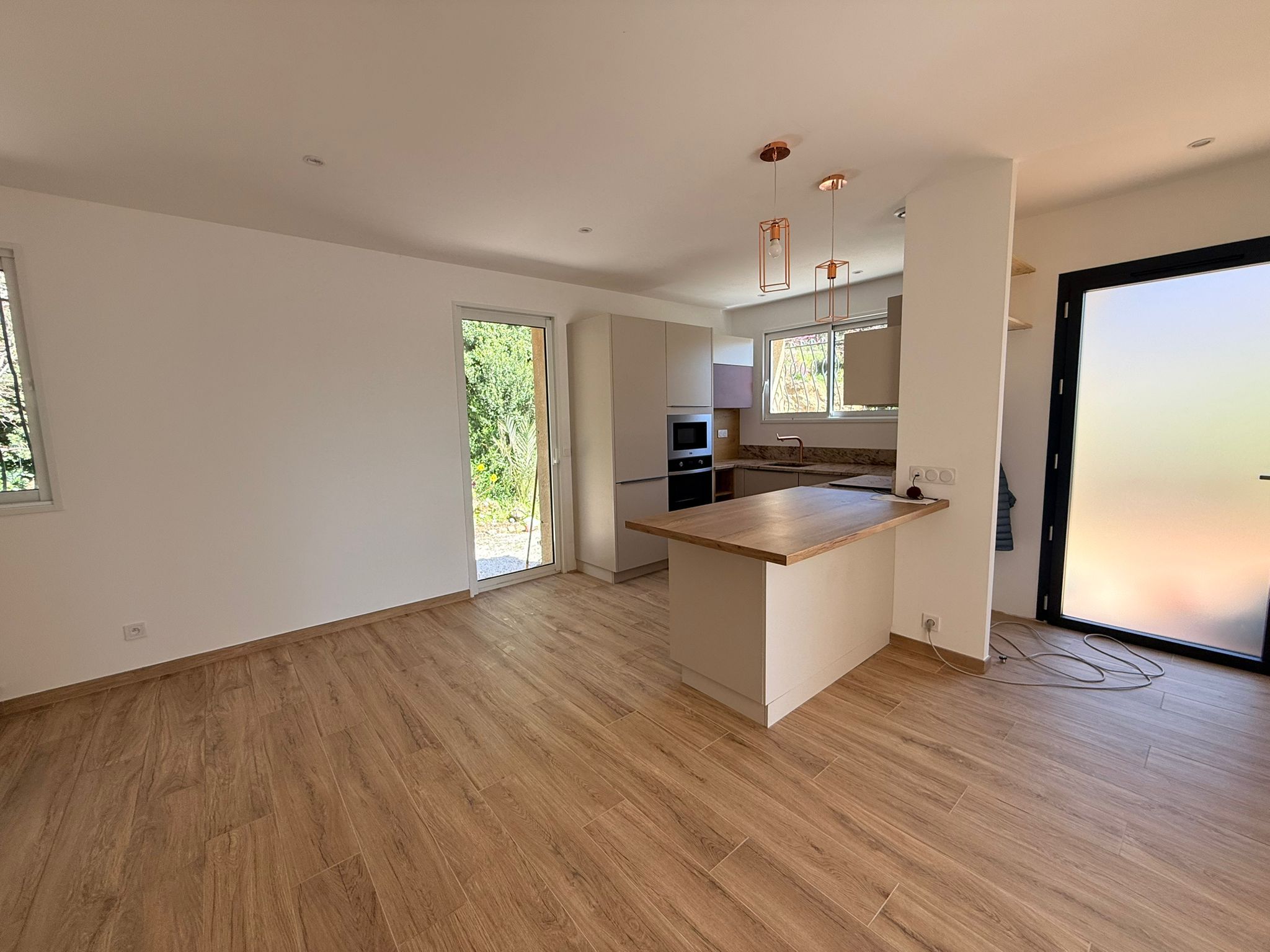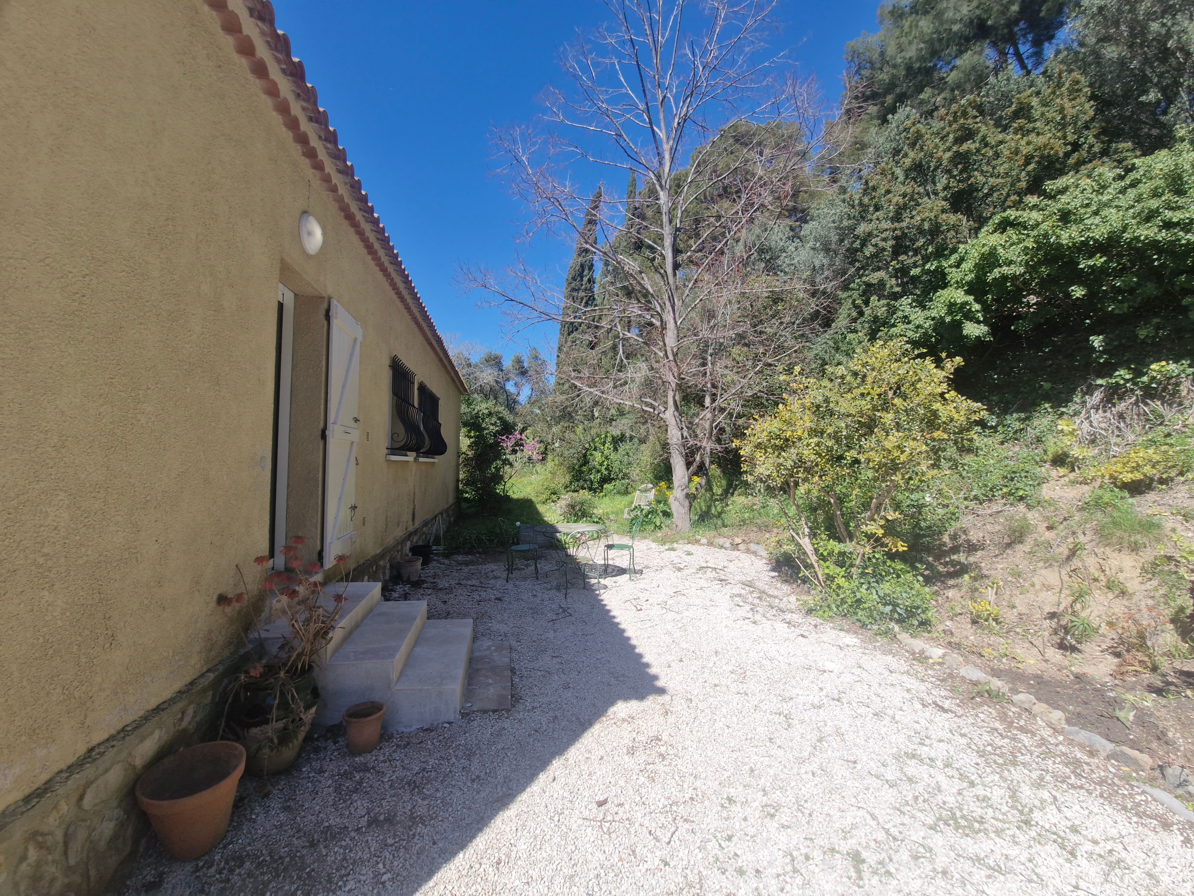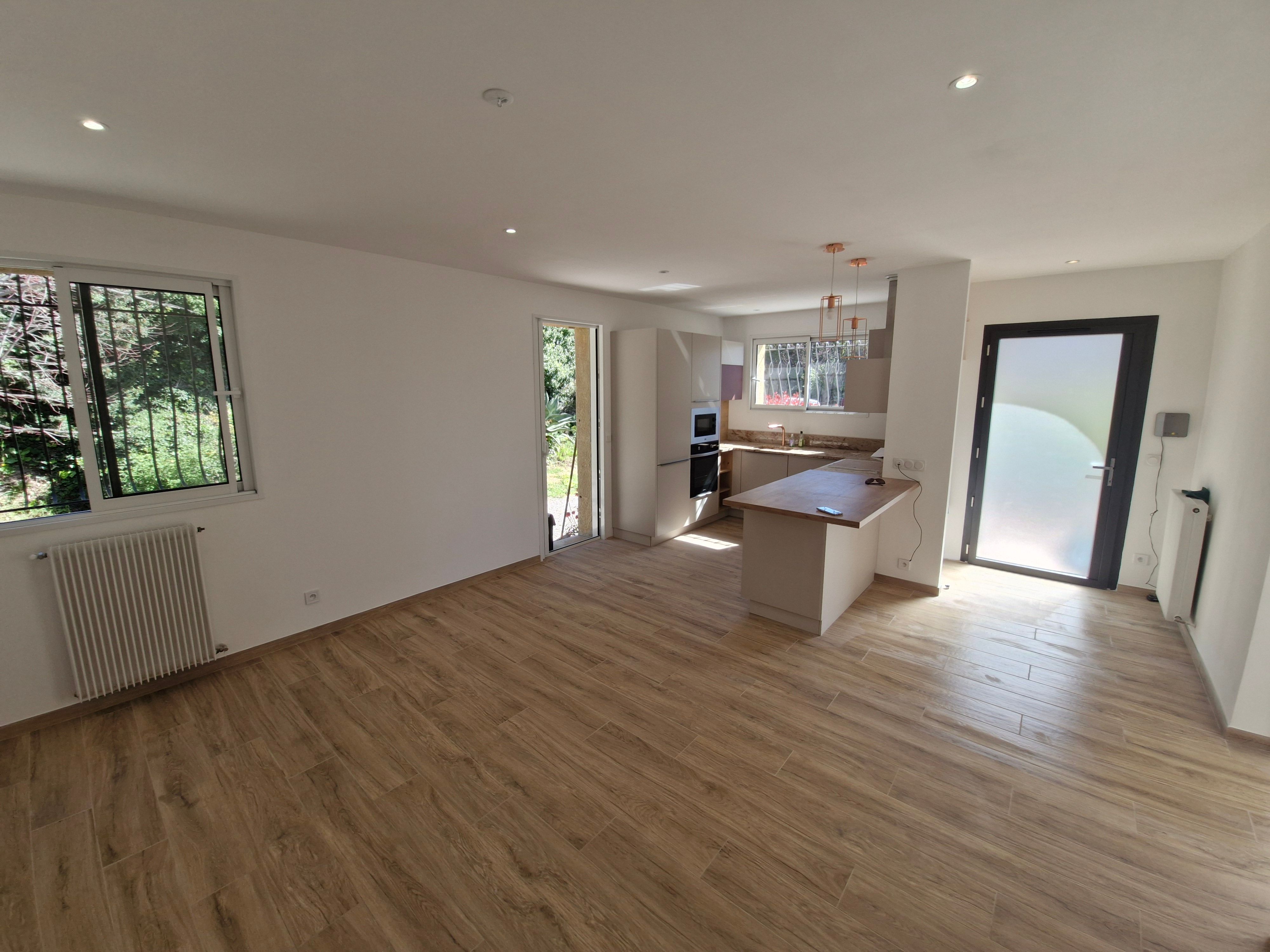Maison rénovée de type 4 de plain pied composé d'une entrée donnant sur cuisine aménagée, salon, 3 chambres, salle d'eau, wc. Terrasse. Cave. Terrain clos. Possibilité de stationner 3 véhicules sur le terrain. Pas de fibre, nécessité d'avoir une clef 4G ou internet par satellite.