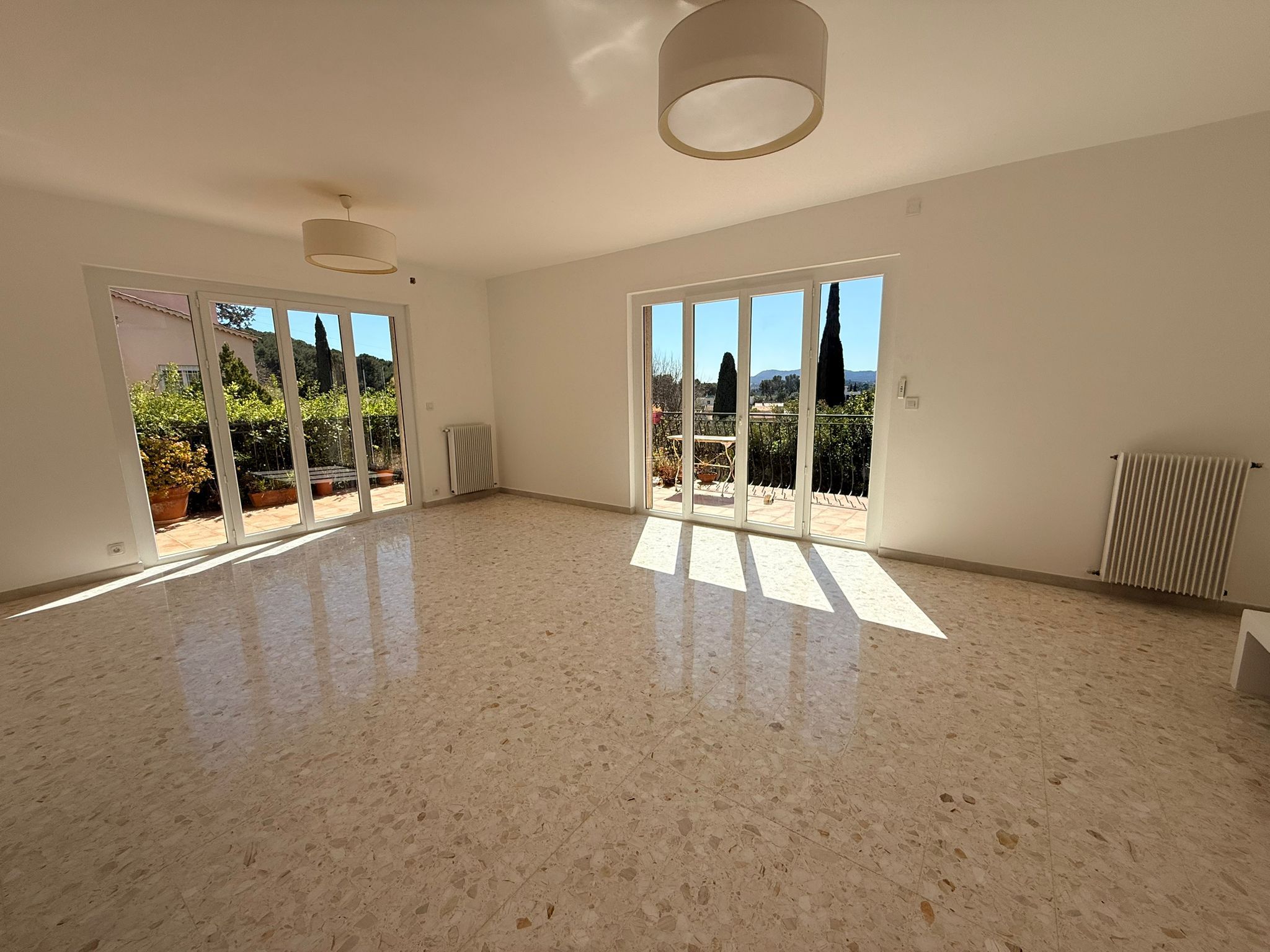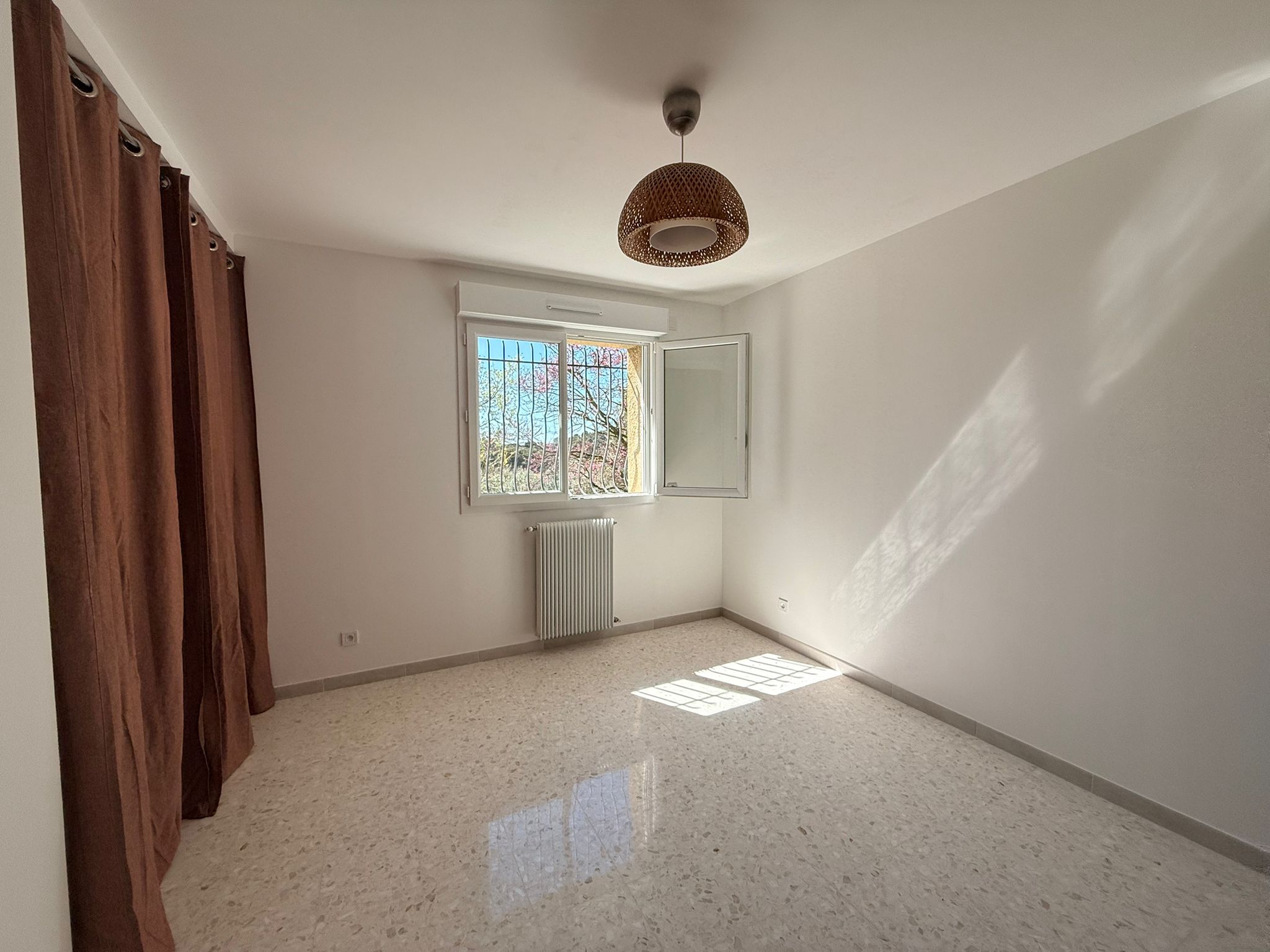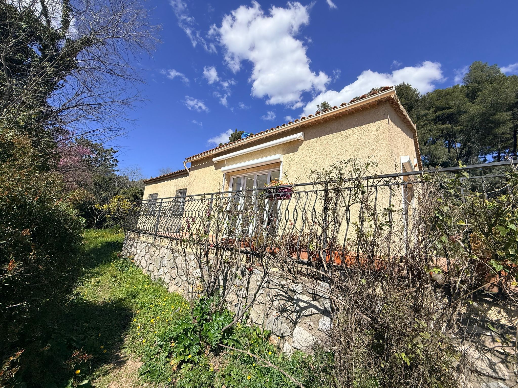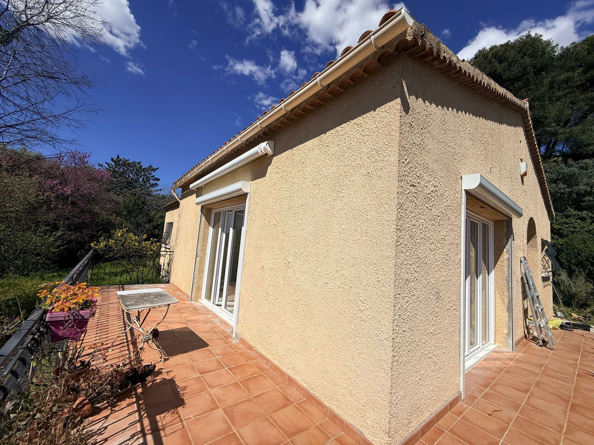 Maison rénovée de type 4 de plain pied composé d'une entrée donnant sur cuisine aménagée, salon, 3 chambres, salle d'eau, wc. Terrasse. Cave. Terrain clos. Possibilité de stationner 3 véhicules sur le terrain. Pas de fibre, nécessité d'avoir une clef 4G ou internet par satellite.
